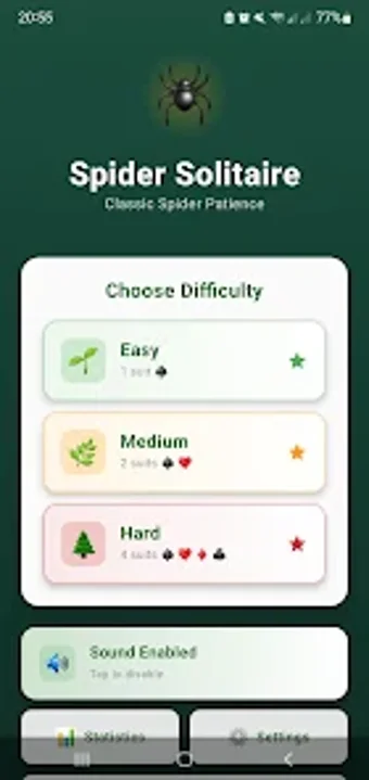 Spider Pro - Card Challenge является увлекательной интерпретацией классической игры в паука, разработанной специально для устройств Android. Эта бесплатная игра предлагает игрокам возможность участвовать в стратегическом и расслабляющем игровом процессе, с элегантным дизайном и оптимизированными управлениями, которые улучшают пользовательский опыт. Игроки могут погрузиться в несколько уровней сложности, позволяя как новичкам, так и опытным игрокам найти подходящий вызов.